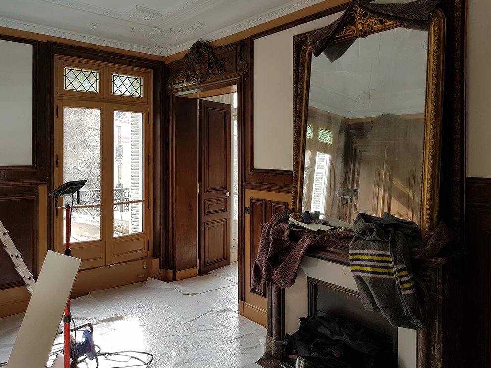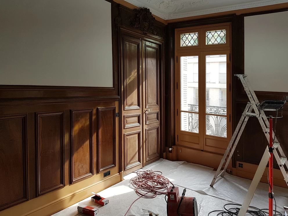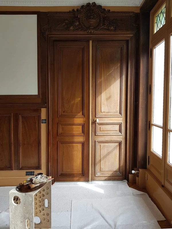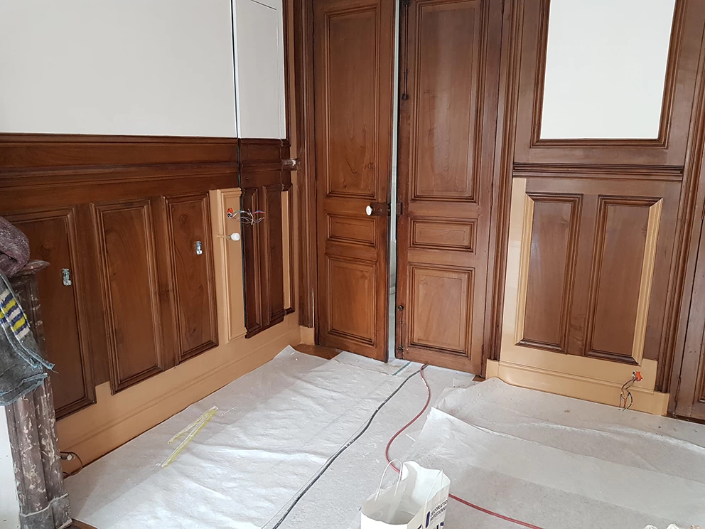 As a result, the old decorations had to be overpainted to revive their colours, while at the same time being reattached with fluid varnishes. It was then sufficient to redo identically the areas that had been trenched for the electrical ducts.