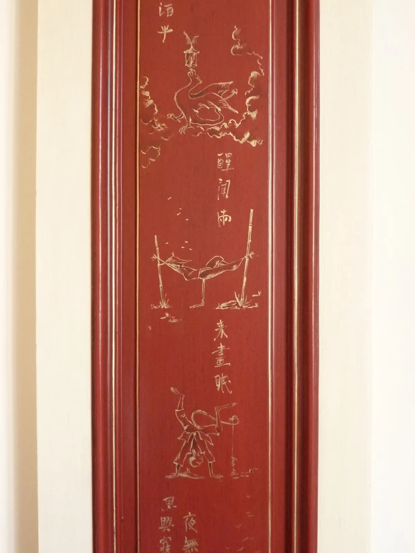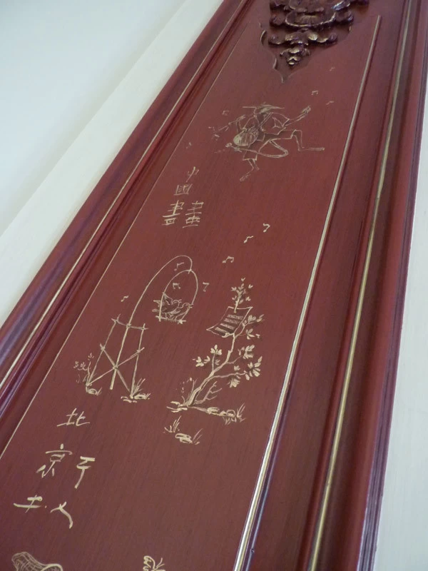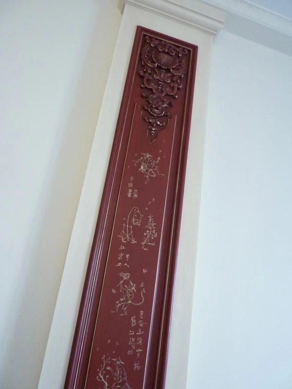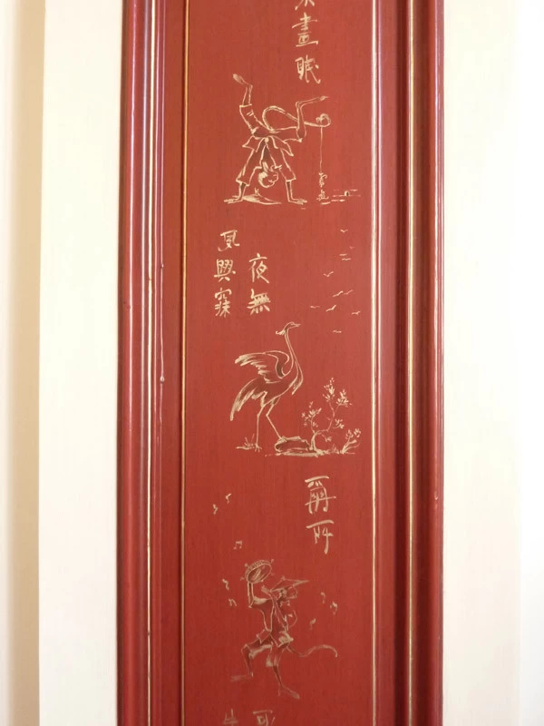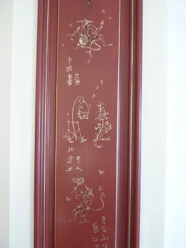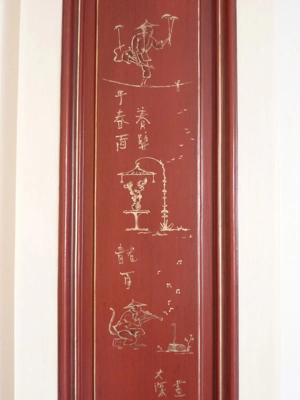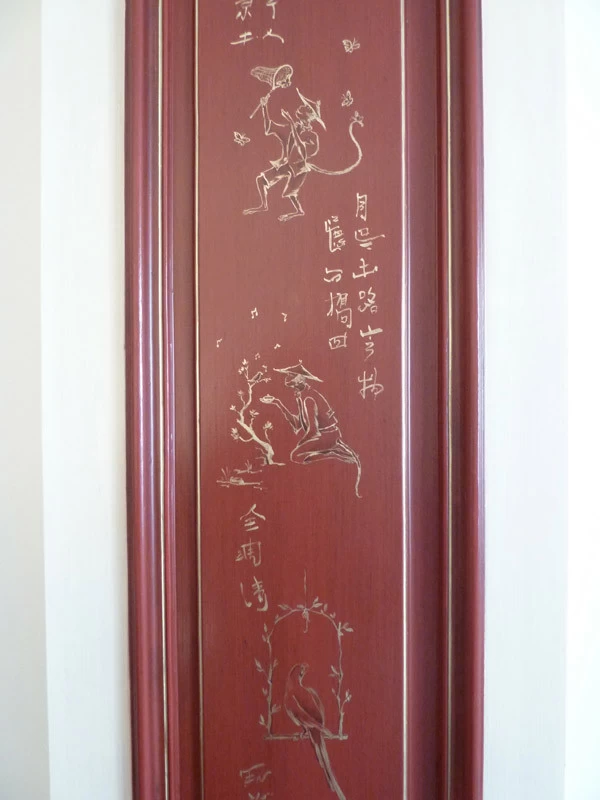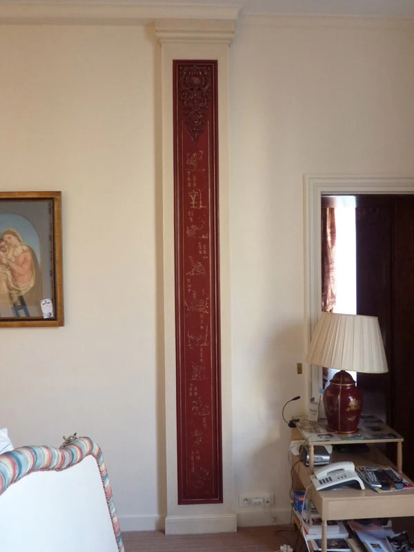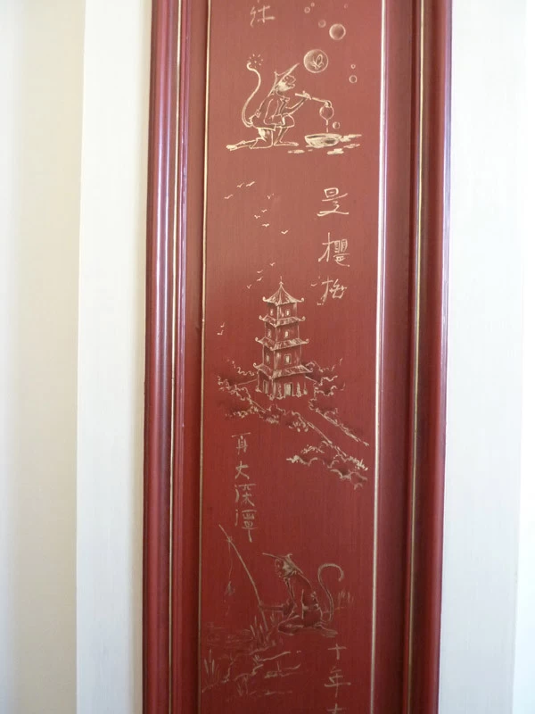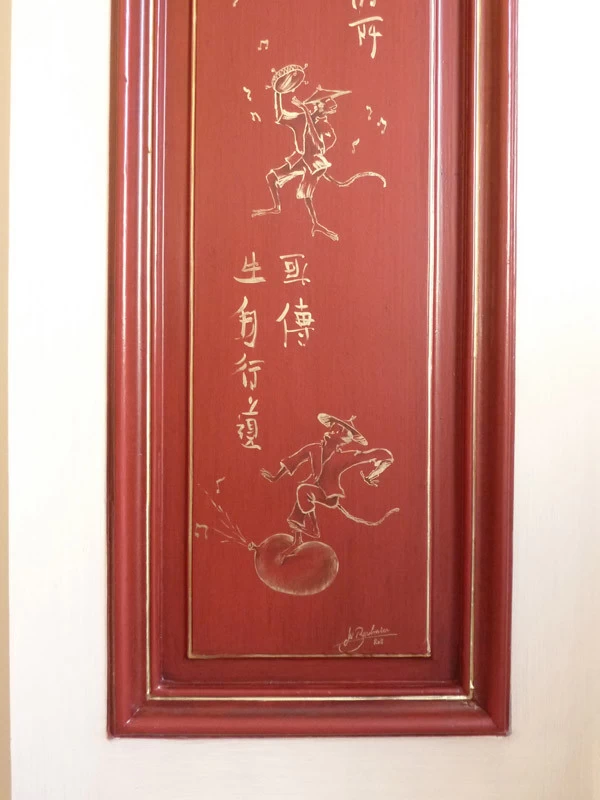 Here is a succession of little mocking and teasing monkeys. Many sketches and research were necessary to harmonize them together. This realization is inspired and coincides with the publication of a very beautiful book on Christophe Huet who created La Grande et La Petite Singerie du château de Chantilly in the 18th century.