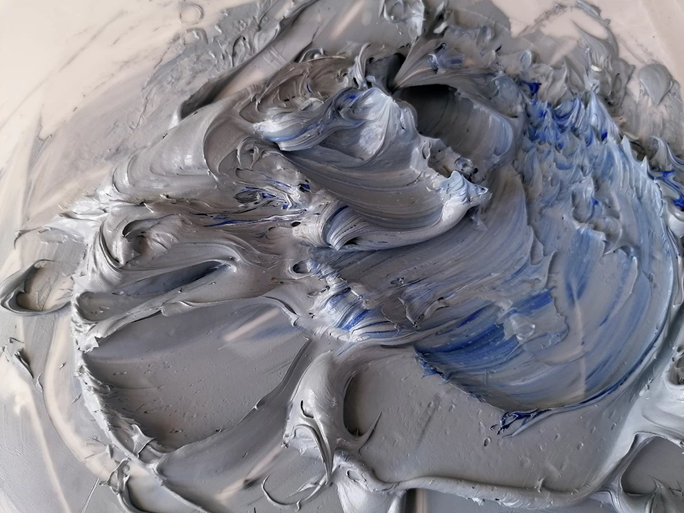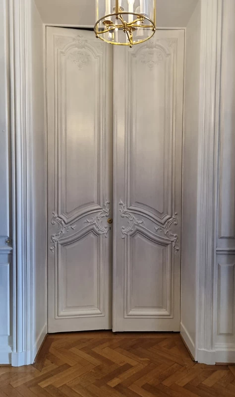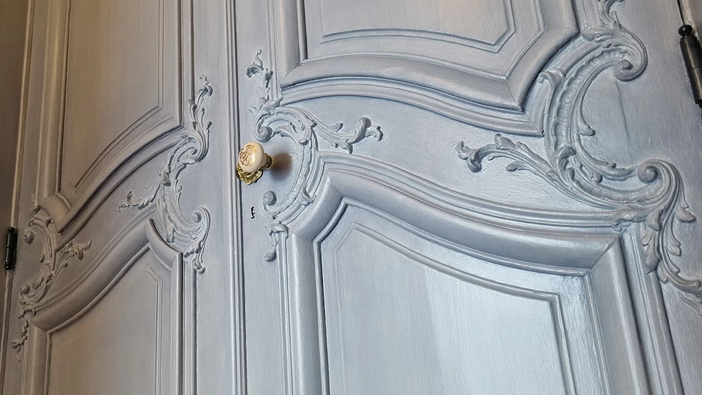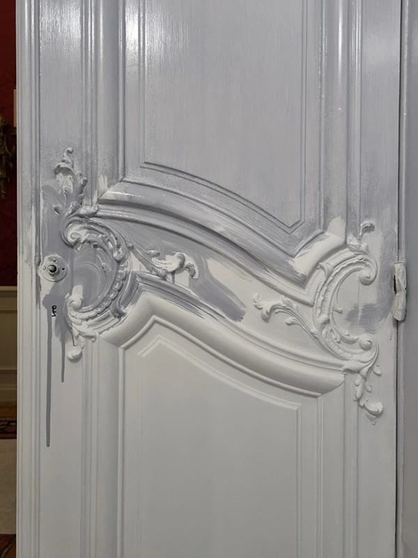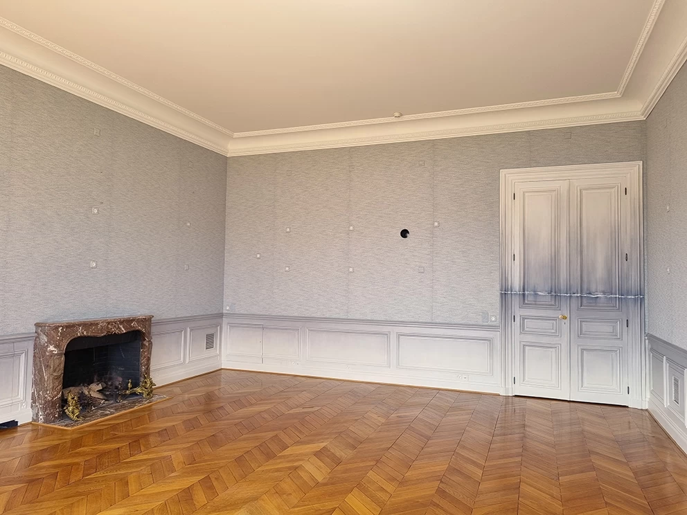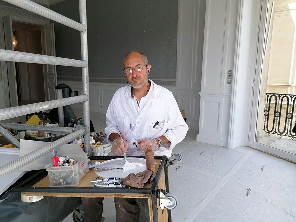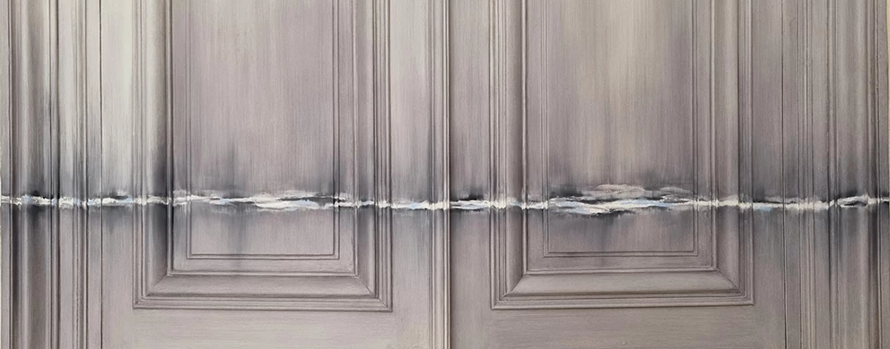 Ce décor reprend le principe des patines dégradées mais au lieu d’aller du haut vers le bas ou inversement, l‘idée était de créer une rupture à mi-hauteur ou chacun y voit ce qu’il imagine.
