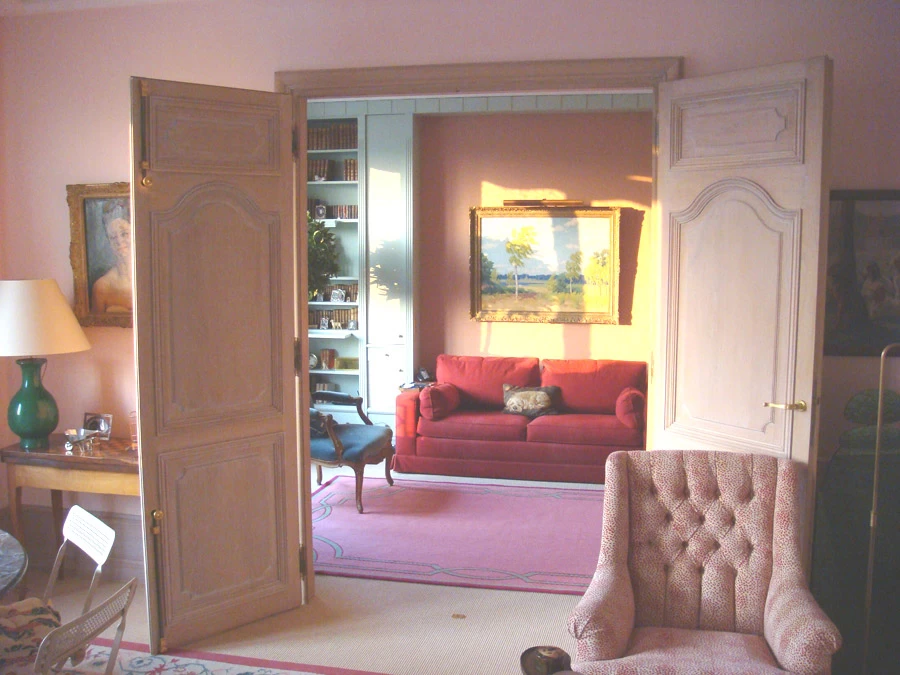 Blanchiment à la cire de toutes les portes et placards de l’appartement, afin de supprimer le côté "rustique" et donner un ensemble plus raffiné. (les tissus ont été posés après)