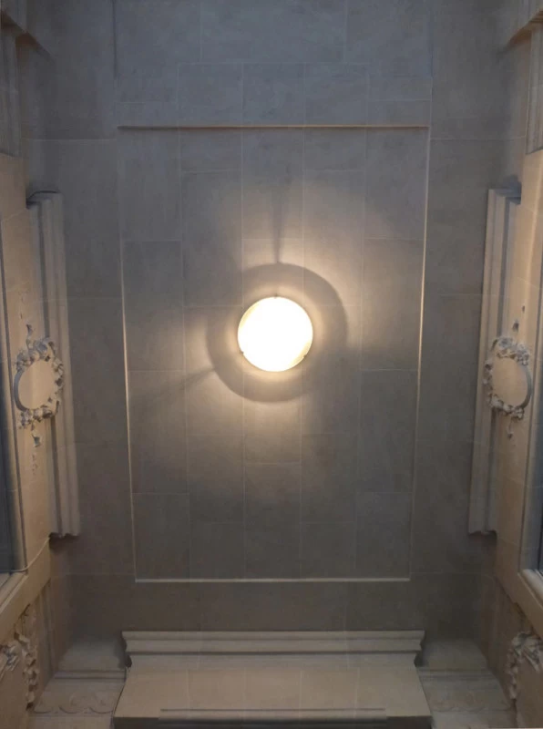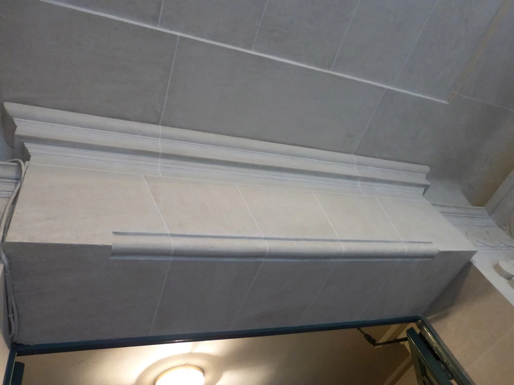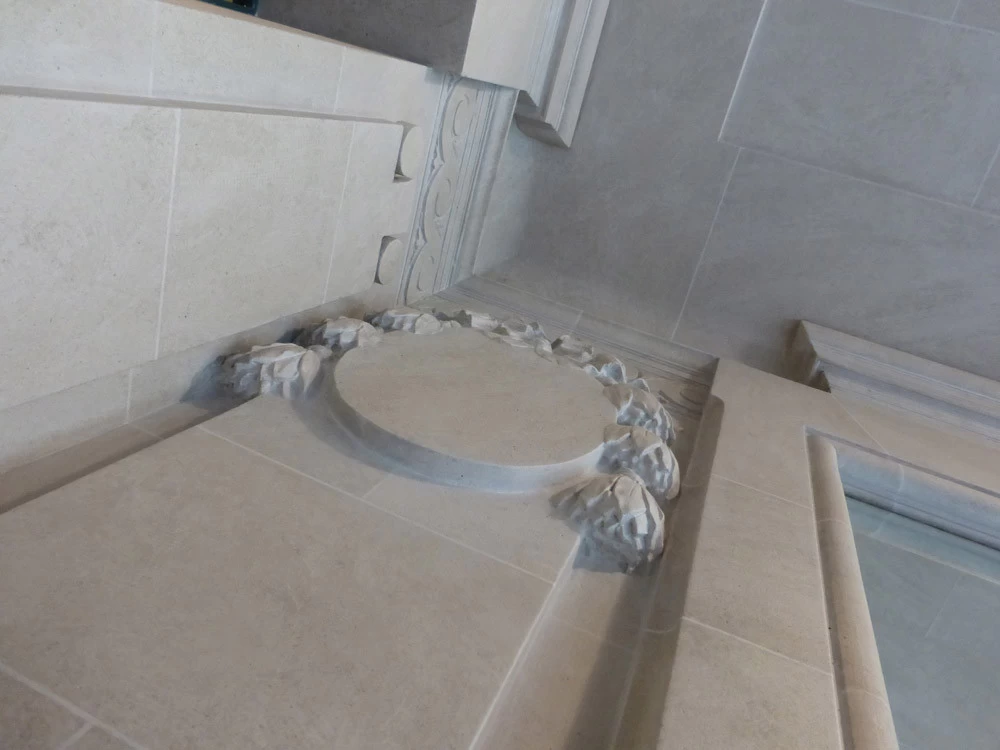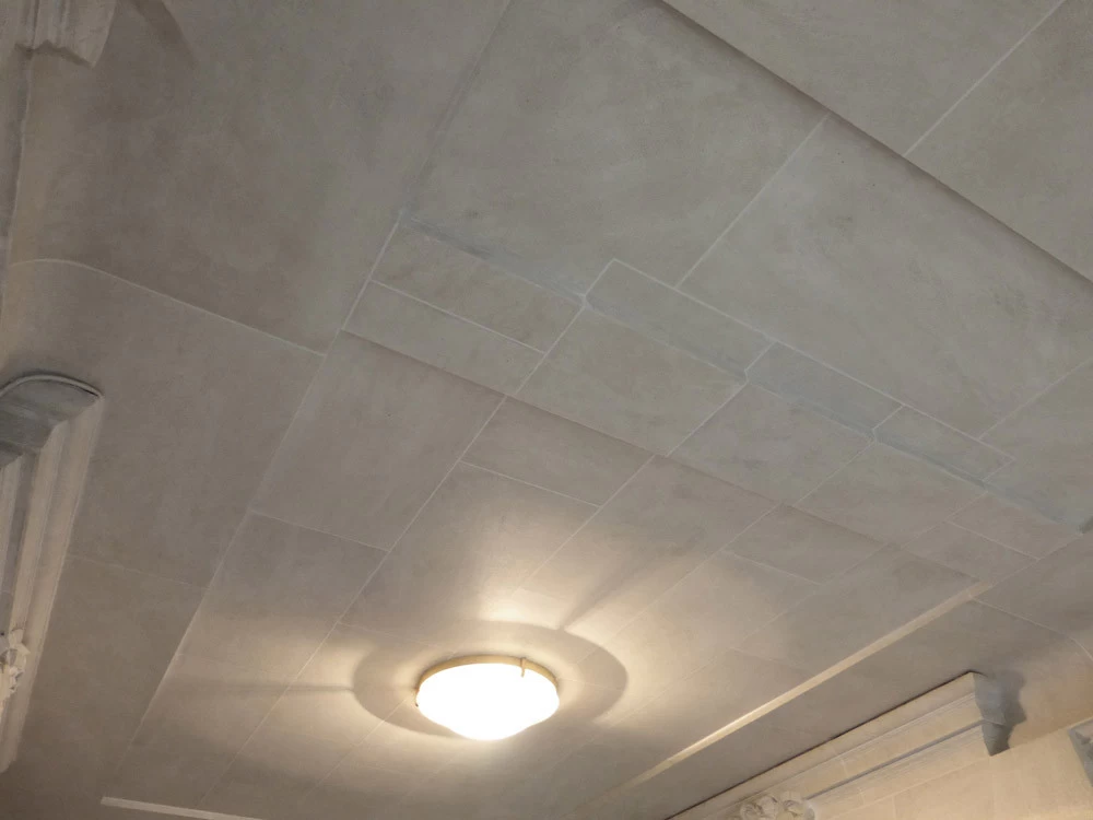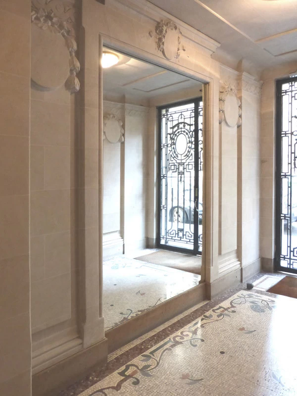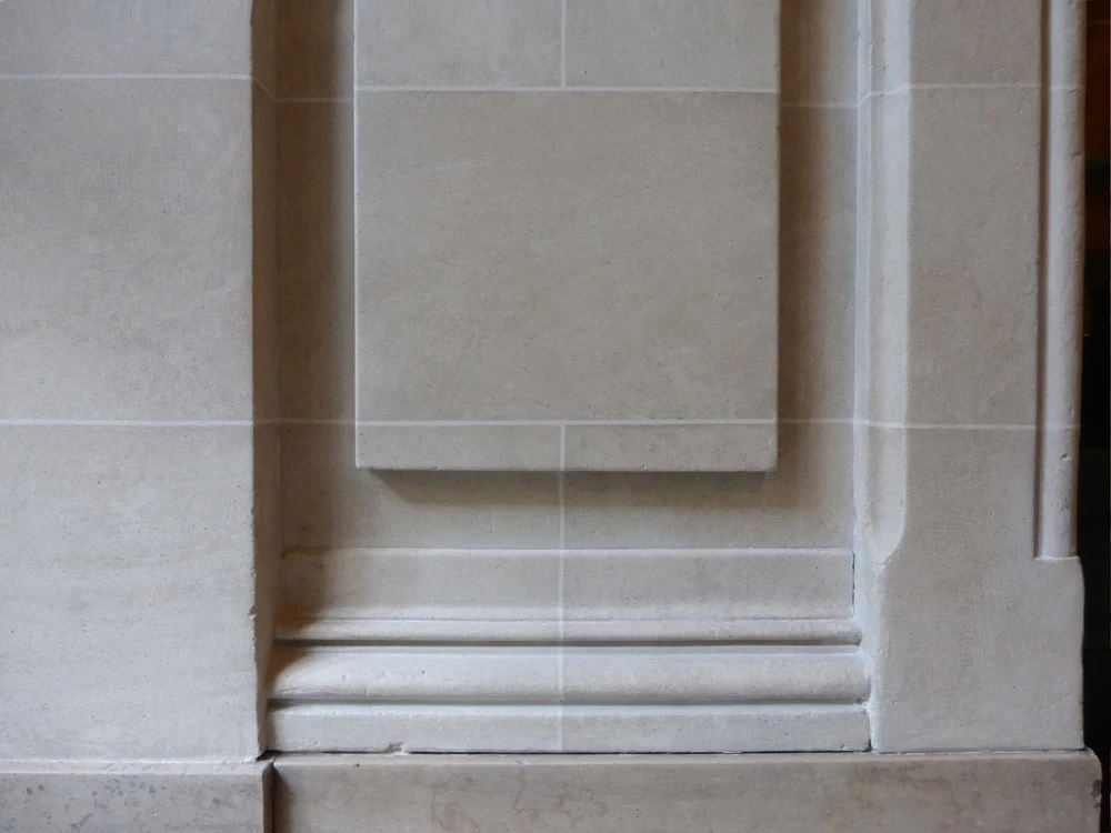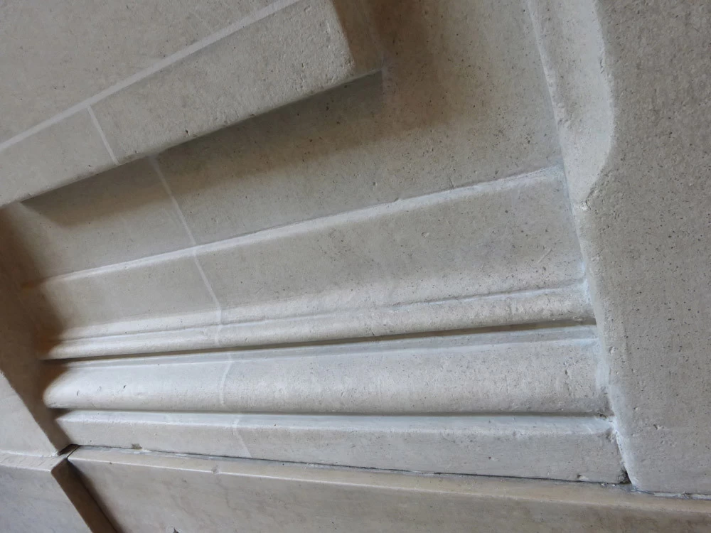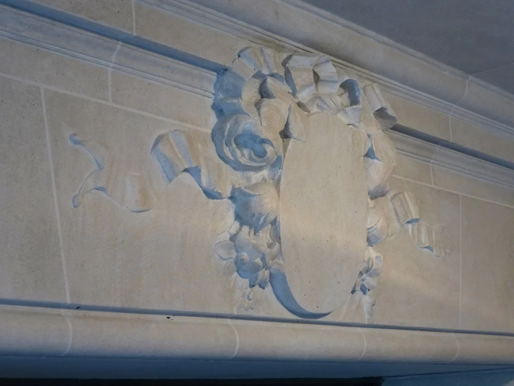 Voici une petite entrée très ornementée. Sale et noircie par le temps, les enduits sablés/jointés étaient trop poreux pour être nettoyés. La peinture décorative a permis d’éclaircir l’entrée tout en la rendant lessivable dans le temps.