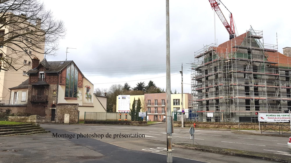 La rencontre avec les promoteurs de cette nouvelle résidence Bellini, qui étaient tenus par la ville de Châtres de faire réaliser un trompe l’œil dans leur projet immobilier, fut enthousiaste et complaisante pour m’aider à le réaliser. Il fallut l’accord de la ville de Chartres bien sûr mais aussi celui des bâtiments de France à cause de la proximité de la cathédrale.