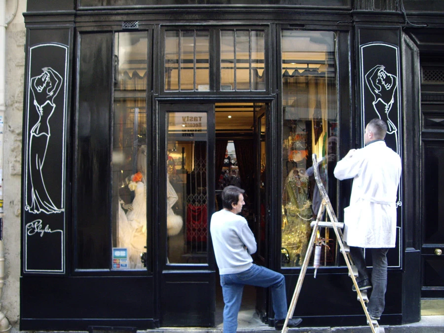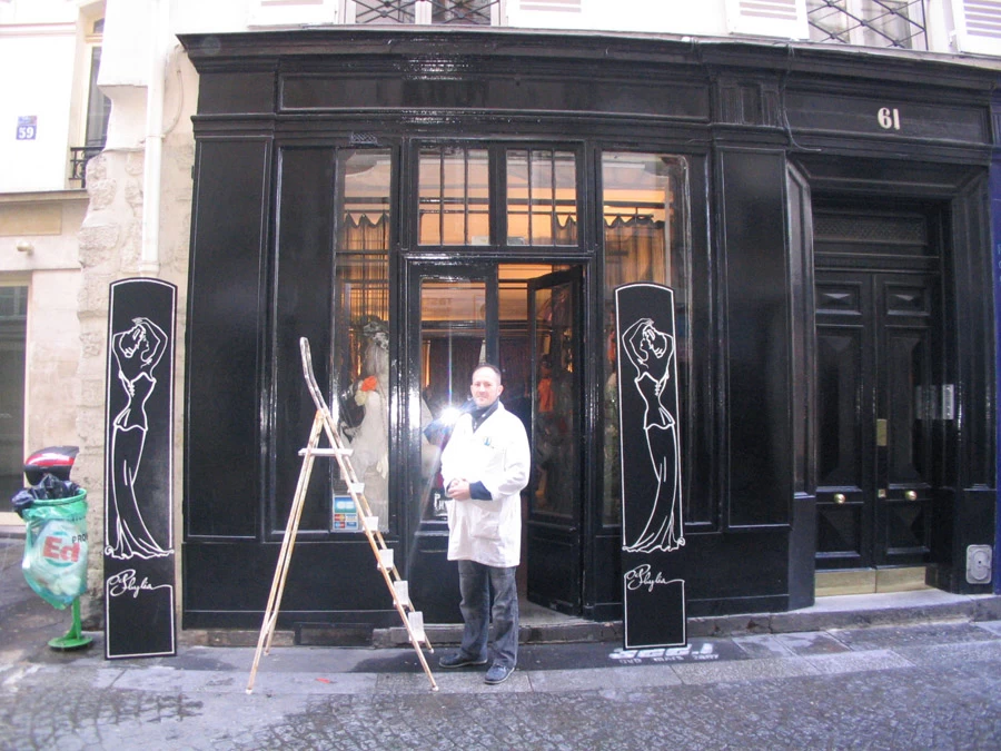 Création de deux panneaux noir et blanc représentant une femme années 30 afin de finaliser la devanture de la boutique Phyléa de mon ami Christian bigeon.