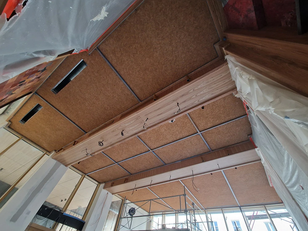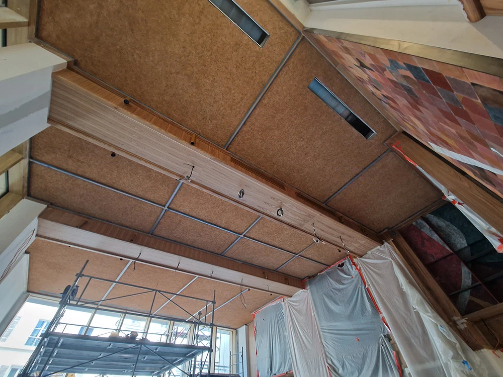 Pour garder ses propriétés acoustiques ce revêtement phonique ne permet pas une quelconque saturation en peinture.