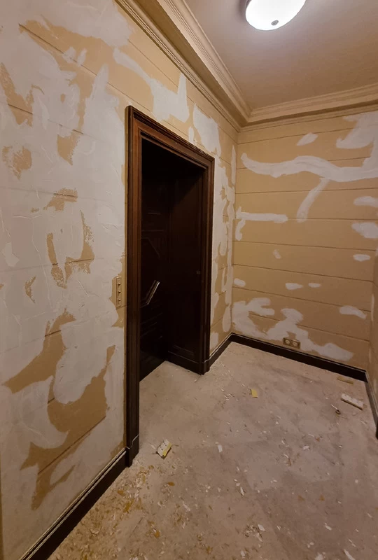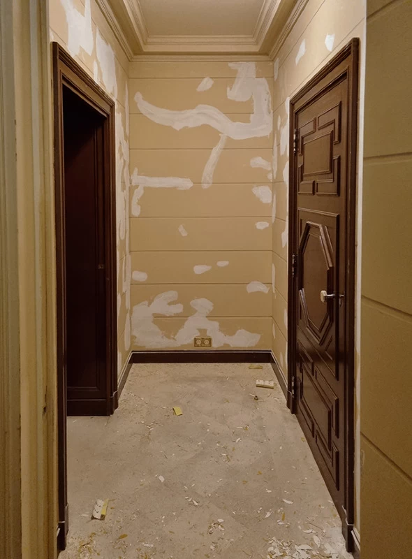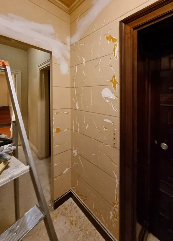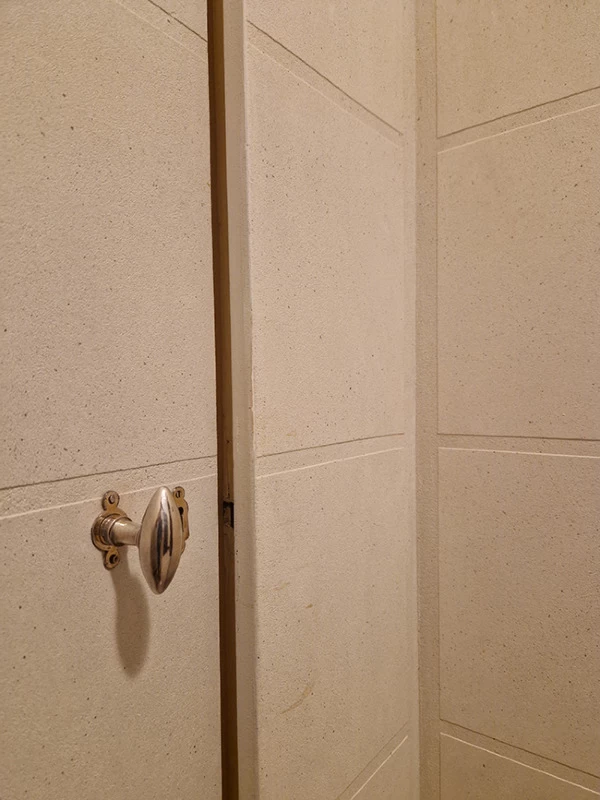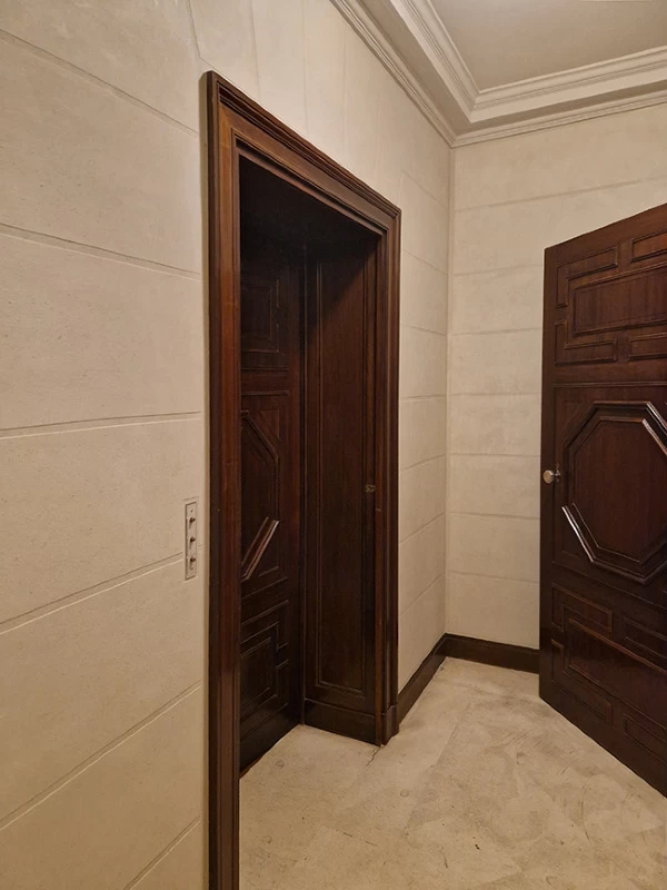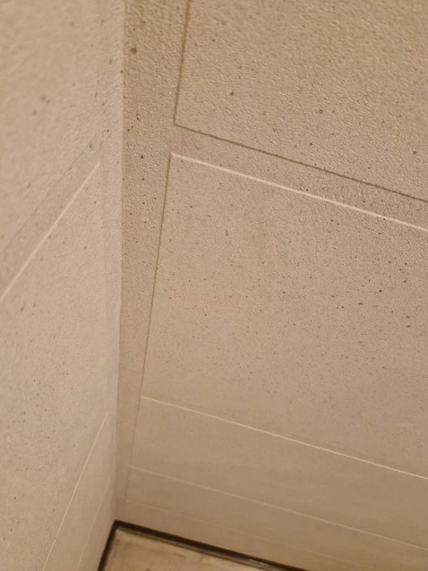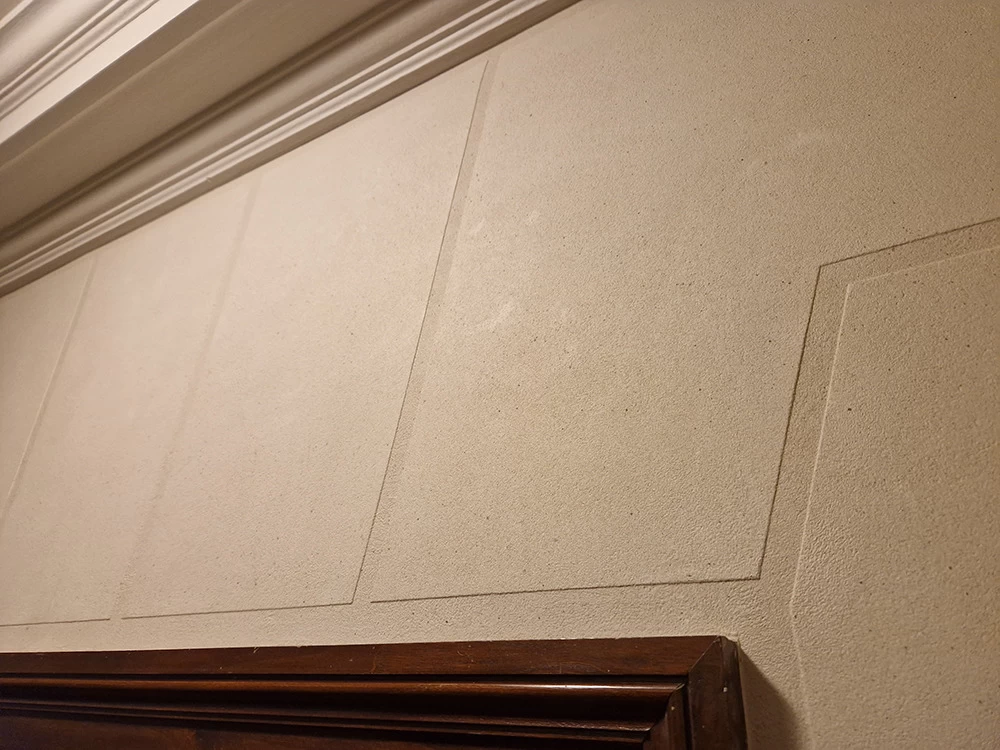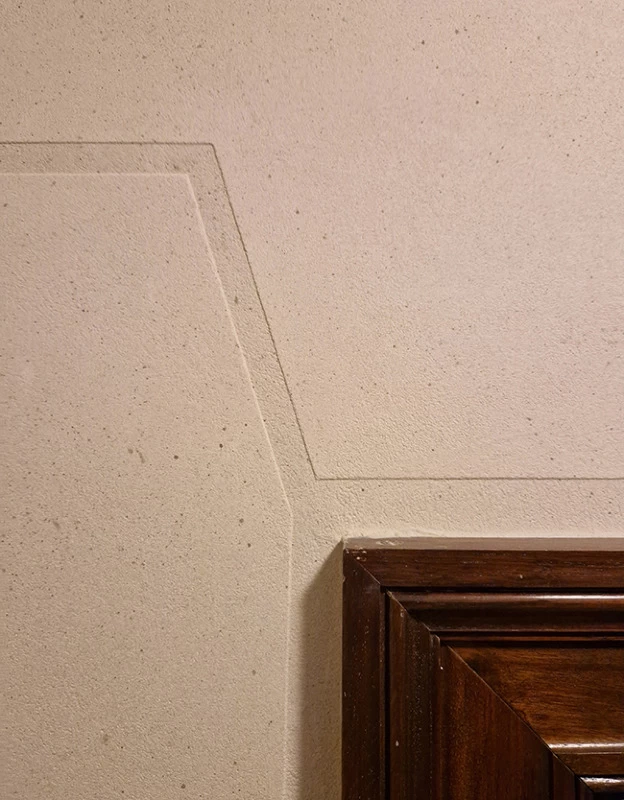 Voici l’imitation d’un enduit ton pierre se basant sur les stucs des cages d’escaliers haussmanniennes. Les reliefs sont moins prononcés et ne sont pas applicables sur des volumes tels que des moulures, ornementations et modénatures extérieures.