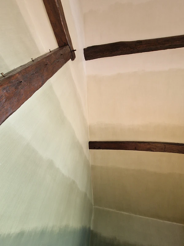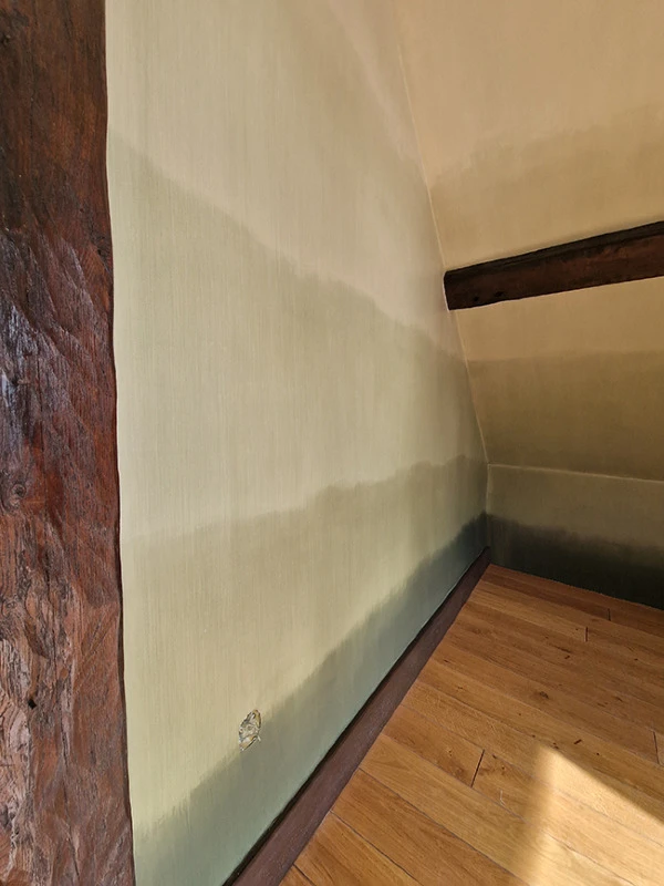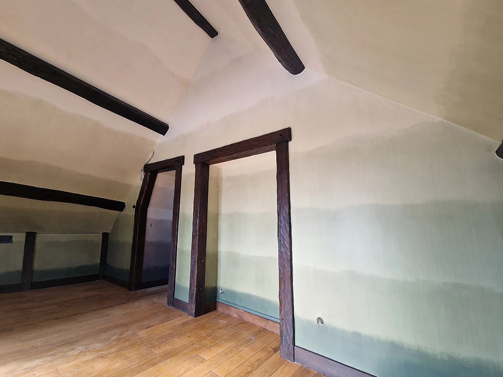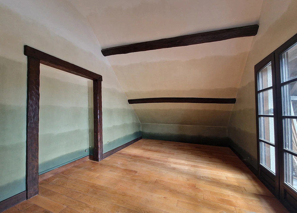 Cette technique permet d’apporter des teintes fortes et colorées sans qu’elles soient présentes sur l’ensemble des murs ce qui donnerait un sentiment d’écrasement.