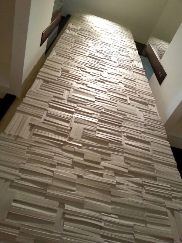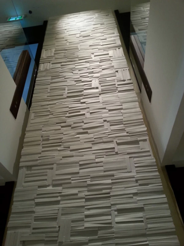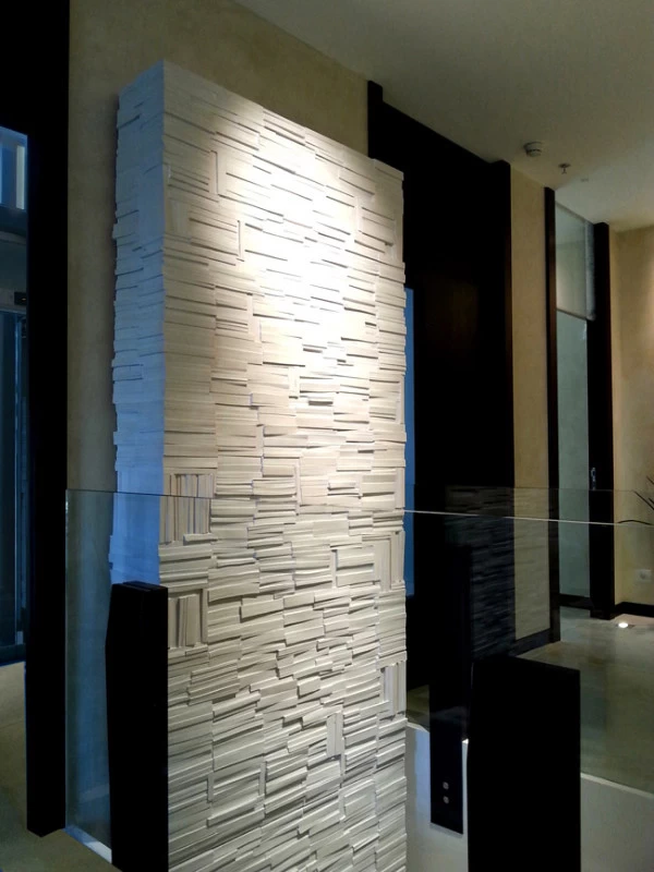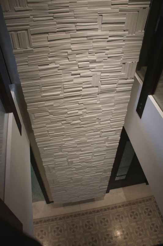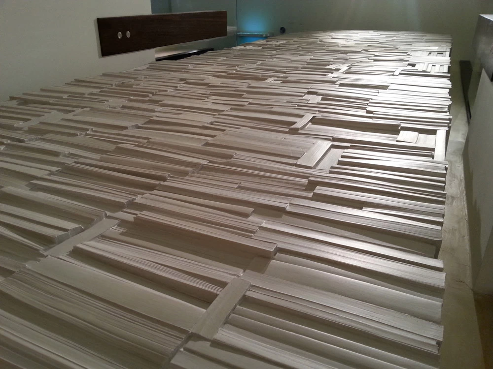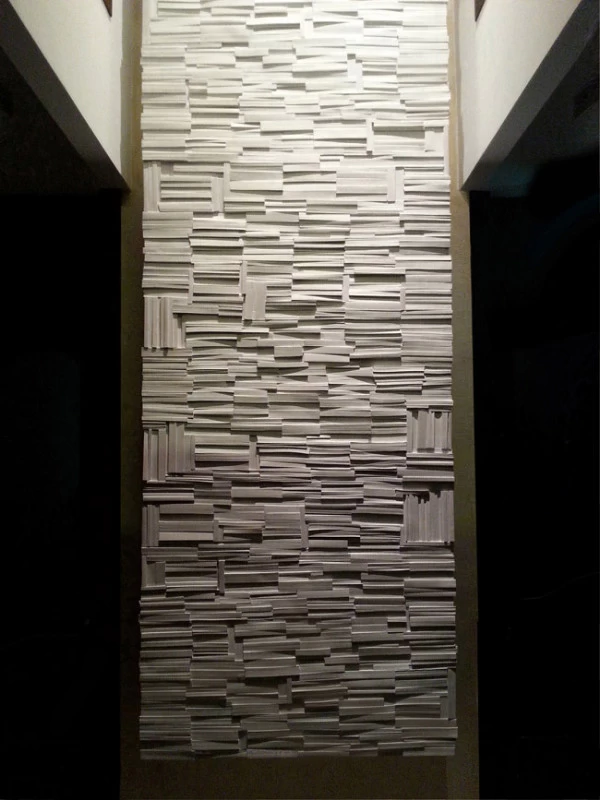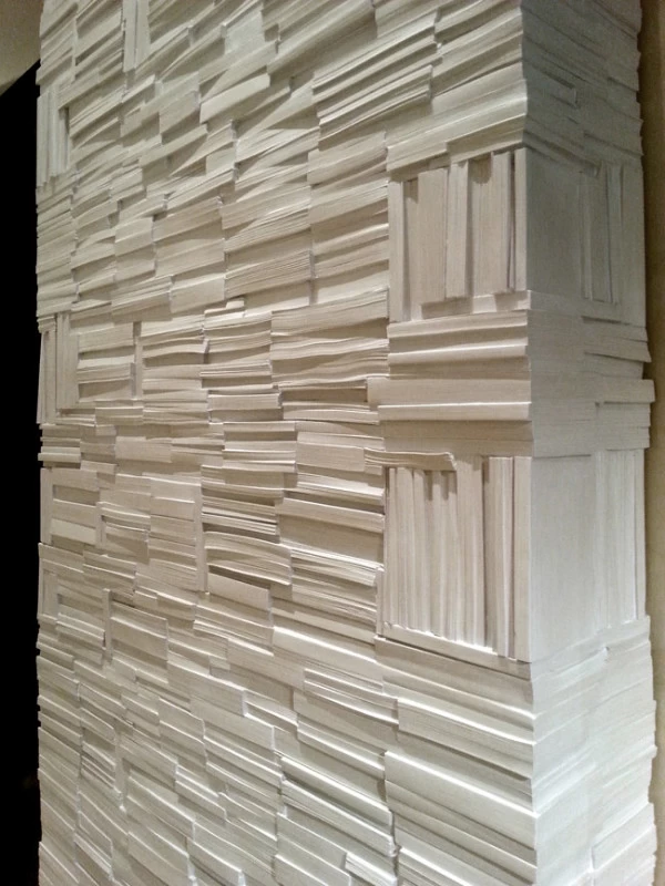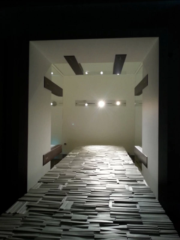 Pour la Fondation Césaré (Caesarea) à Tel Aviv, voici un mur de livres monumental, qui symbolise la culture, la connaissance et l’enseignement. L’objectif de cette fondation étant d’attribuer des bourses pour aider les étudiants à prolonger leurs études et projets dans les hautes écoles. Les empreintes et moulages issu des « cubes de livres » ou « tableaux de livres » créés par mes soins et issu de la collection Blanche des Éditions Gallimard, ont été réalisés par un plasticien, afin de réaliser un assemblage mesurant plus de 5 mètres de hauteur.