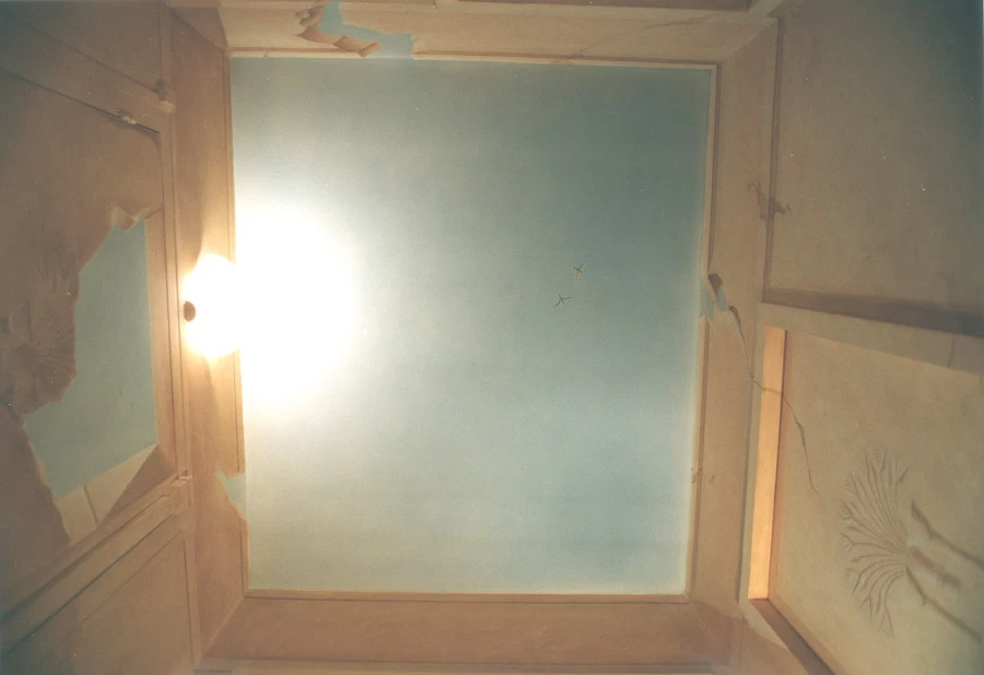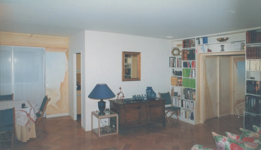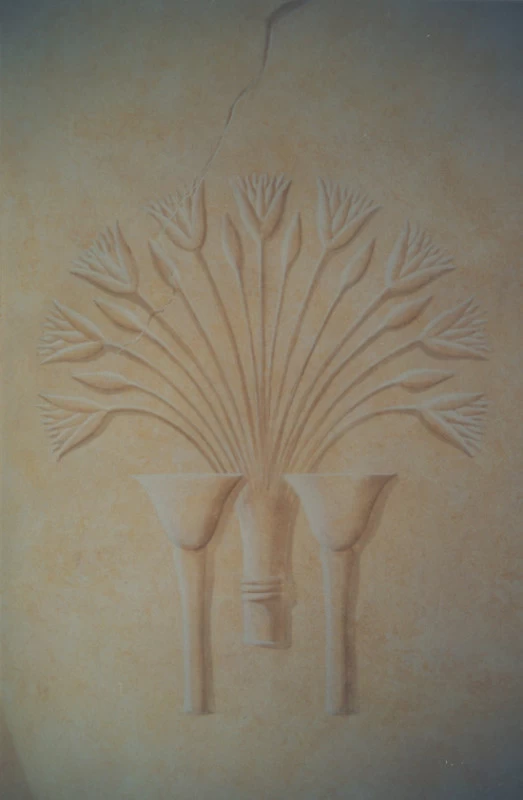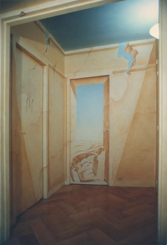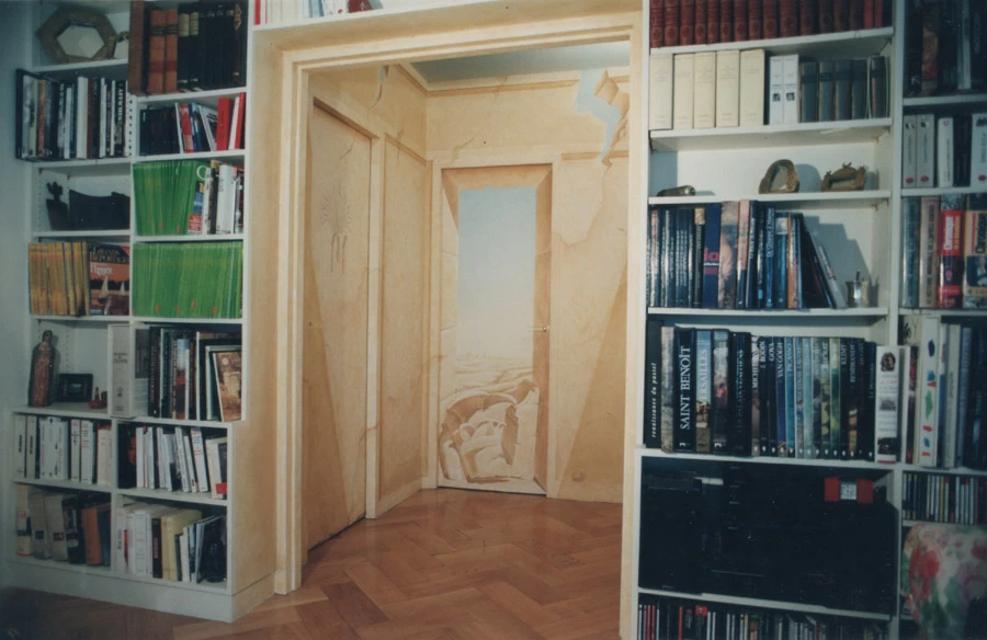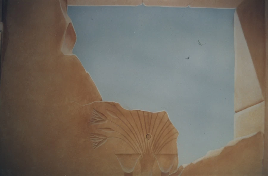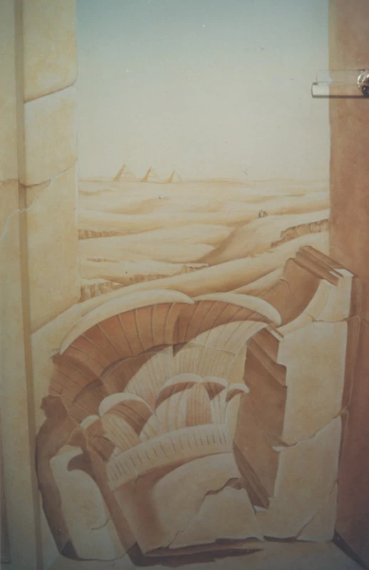 Réalisation d’un décor égyptien sur l’ensemble des murs, avec un ciel et un motif différent sur chacune des portes.